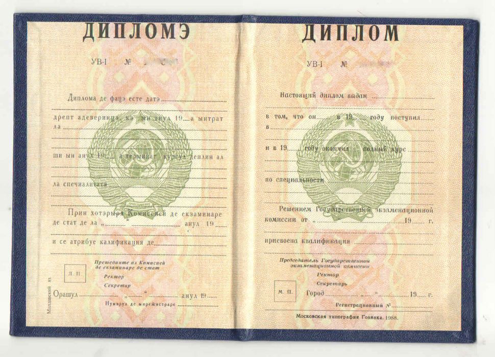 Диплом СССР республики Молдова