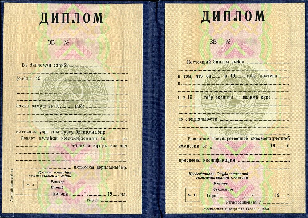 Диплом СССР республики Азербайджан