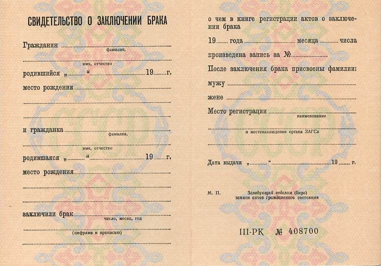 Свидетельство о заключении брака РСФСР 1971-1992